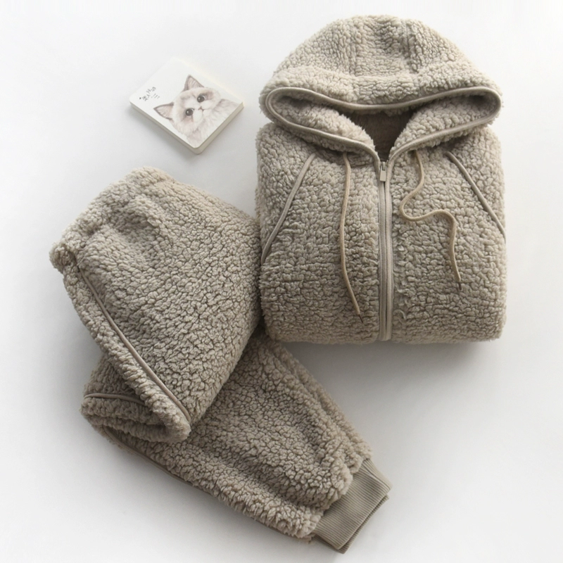 Hooded men’s and women’s sherpa thickened warm couple’s pajamas