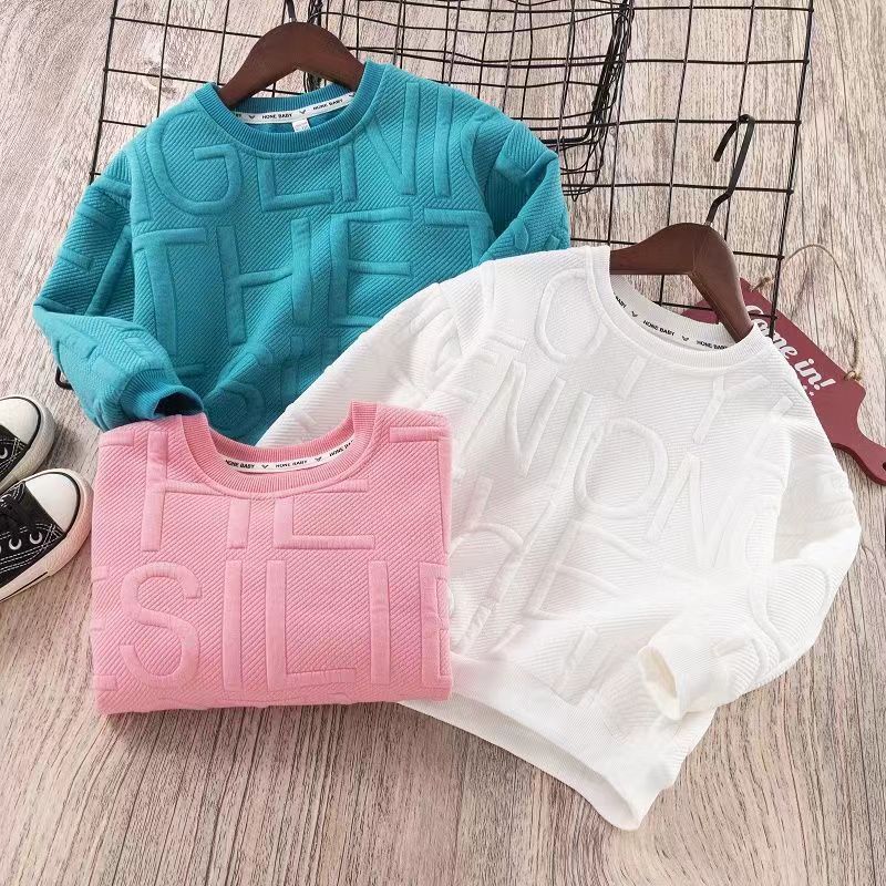 2024 spring new three-dimensional letter round neck versatile children’s clothing western style net red top wholesale children’s sweater