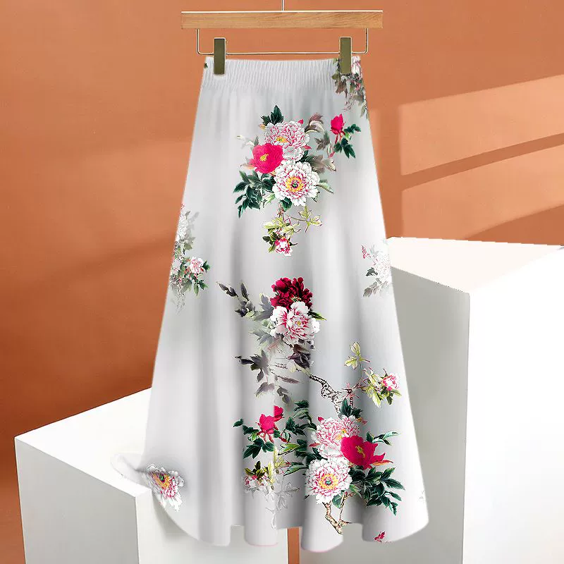 Fashionable print drooping look slimming and over-the-knee midi skirt