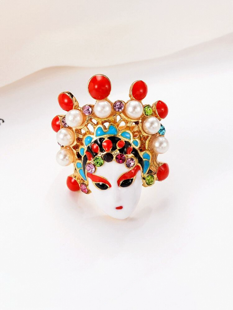 Retro Chinese Wind Knife Horse Personal Creative Ring Women’s Jewelry Character Peking Opera Facial Facial Ring National Wind Decoration