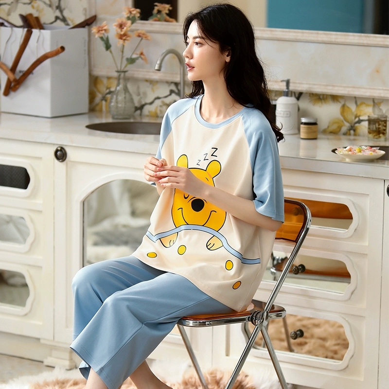 Women’s summer pure cotton cropped pants ins internet celebrity style pajamas