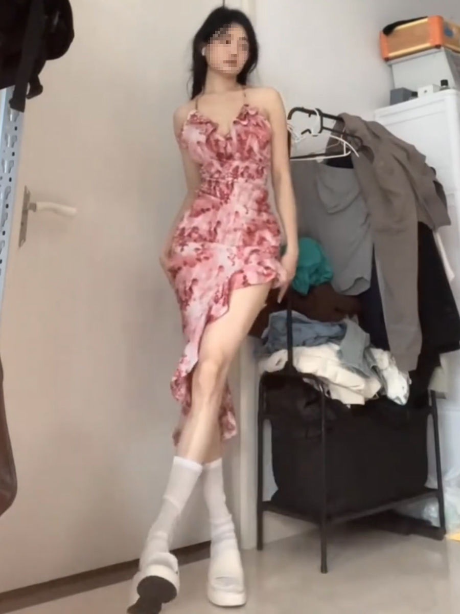 dress Women’s 2023 Summer New Pure Sexy Floral Irregular Slip Skirt Hot Girls Slim-fit Backless Skirt