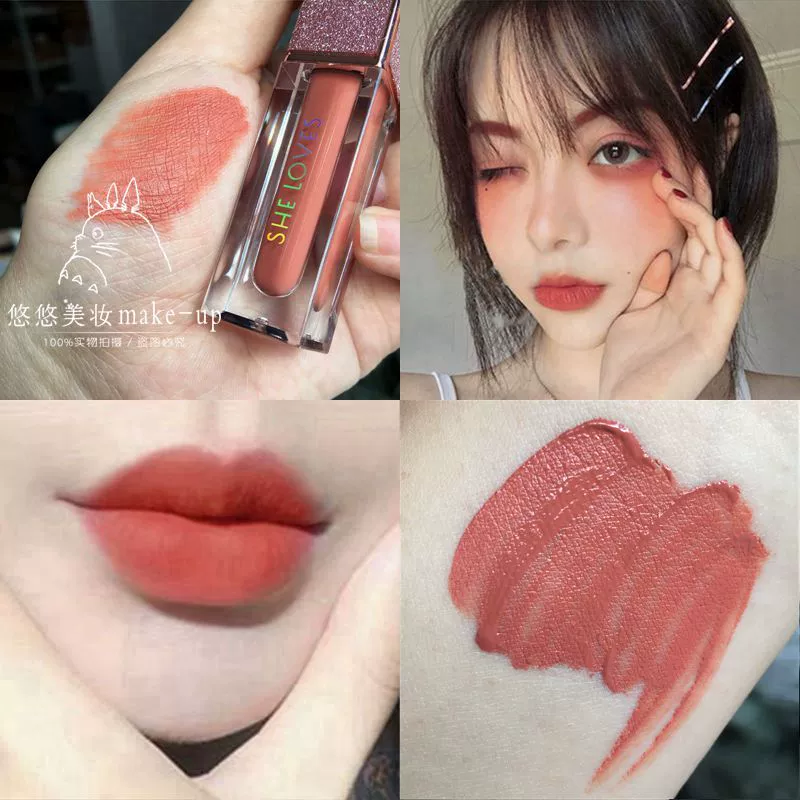 European and American style peach milk tea pink almond bean paste daily pink orange matte matte lip glaze long-lasting and non-fading