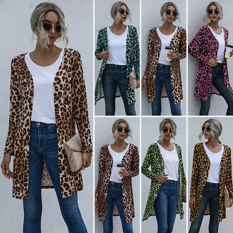 Nuoxi Amazon Cross-border 2021 European and American Women’s Long Sleeve Button Leopard Print Coat Women’s 1325