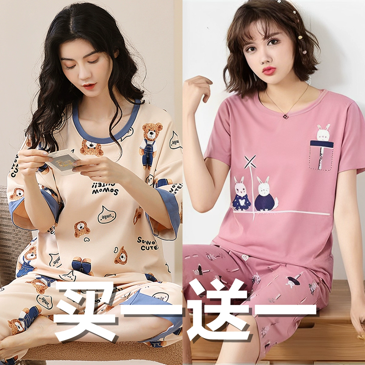 Pajamas women fat sister summer pure cotton short-sleeved cropped pants set plus size 220 catties loose home clothing 5XL