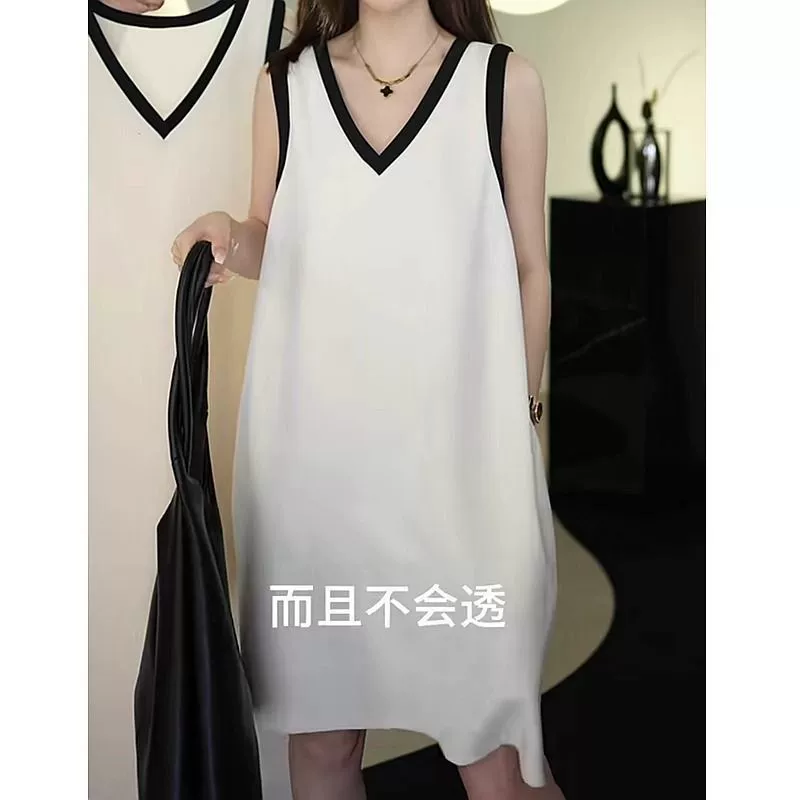 Large size female slightly fat MM300 catties style Teny -sleeveless cover meat vest dress loose and thin A -line skirt summer