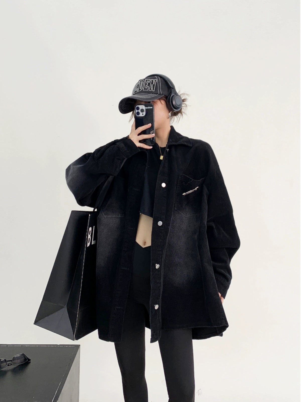 Waste wood autumn American retro design sense niche shirt loose heavy worker as old light cores shirt jacket female tide