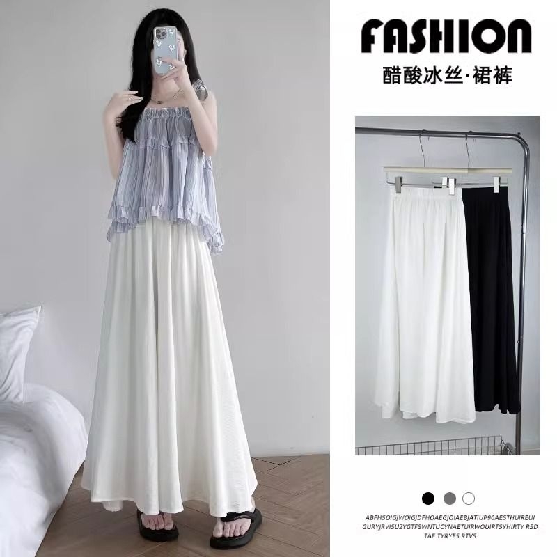 Culottes Women’s Summer Thin 2024 New A- Line Half-length Skirt Spring and Autumn Fairy Small Draps Wide Leg Skirt