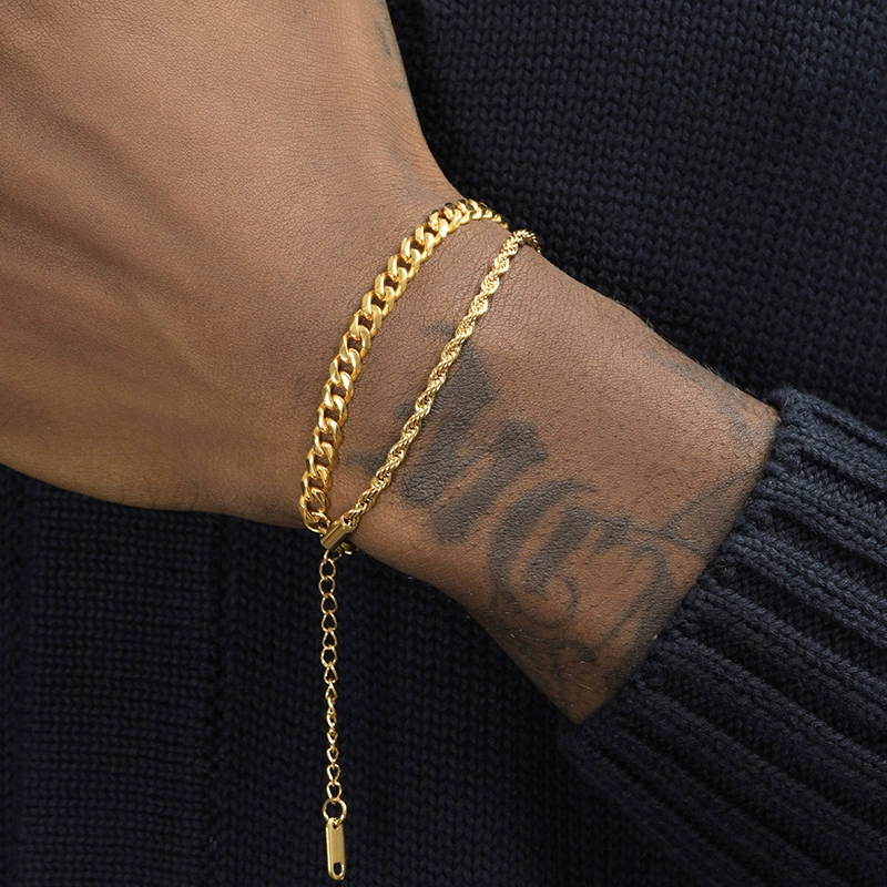 GRGR 18K gold Cuban twist stacking bracelet for men and women, hip-hop European and American popular double-layer bracelets for couples, same style