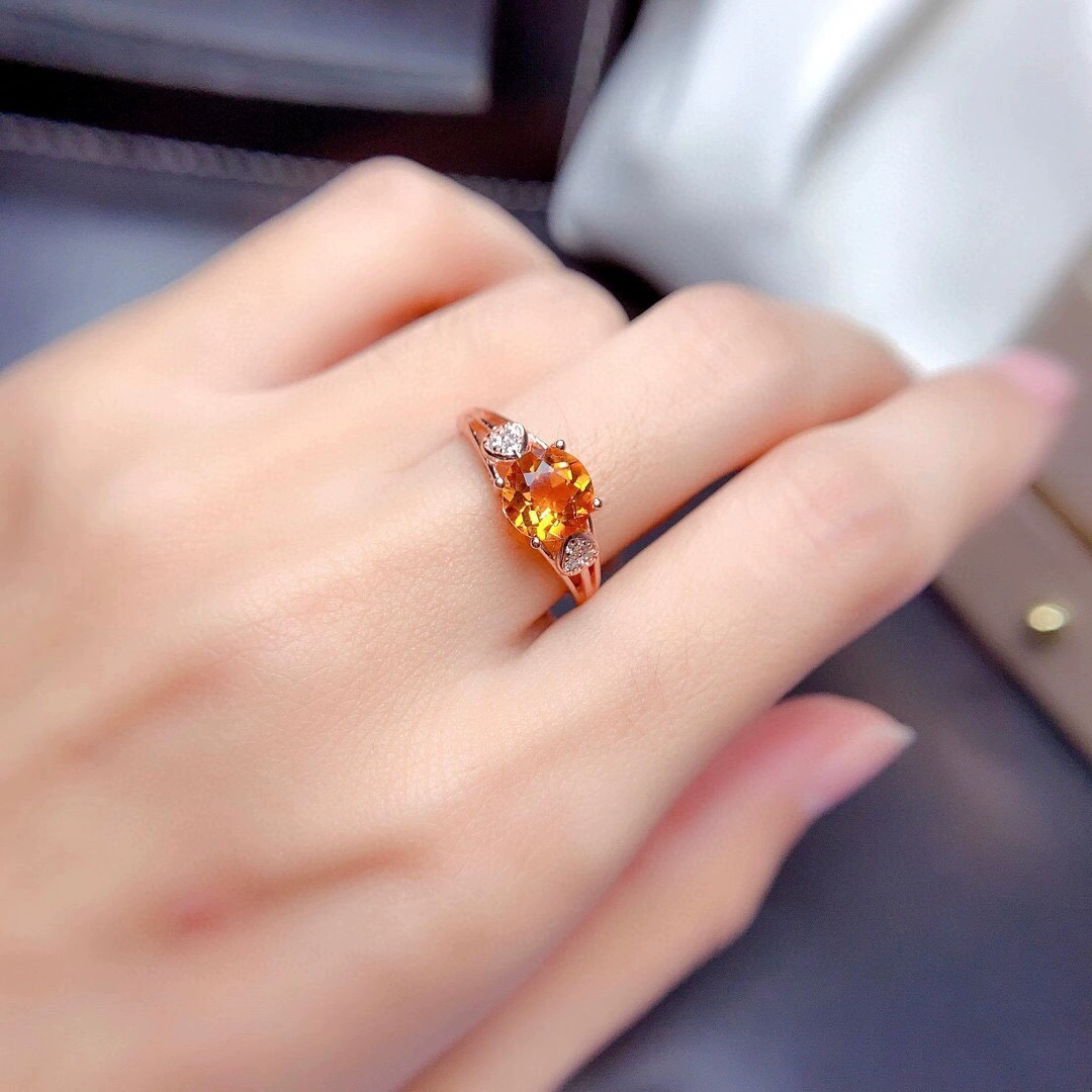 Natural citrine ring for women S925 sterling silver fashionable personality lucky topaz open ring simple round shape