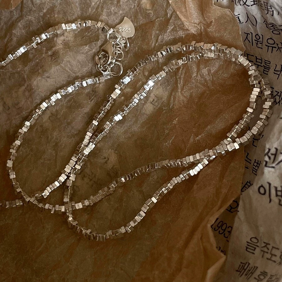 Super flash broken silver necklace women’s simple cold style S925 silver clavicle chain hip hop disco creative sweater chain trend