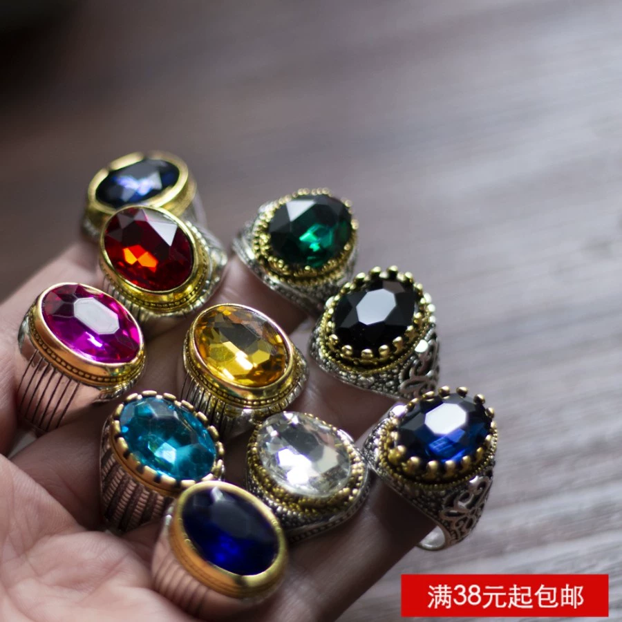 Two-color retro gold and silver alloy rings for men and women couples small accessories props jewelry palace inlaid artificial gemstones