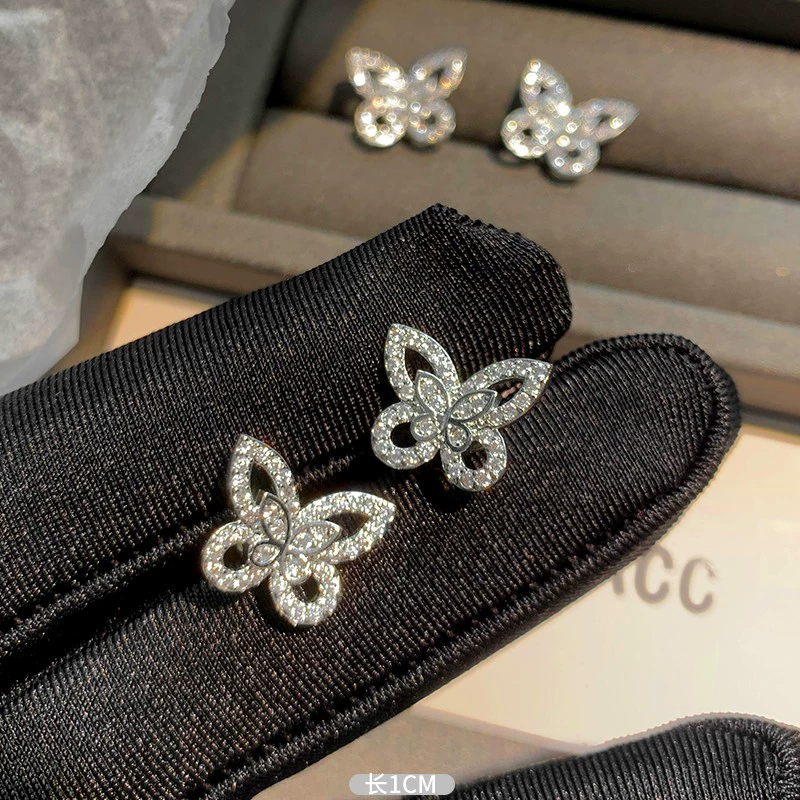 Light luxury Butterfly Girl’s compact and versatile sterling silver full diamond earrings