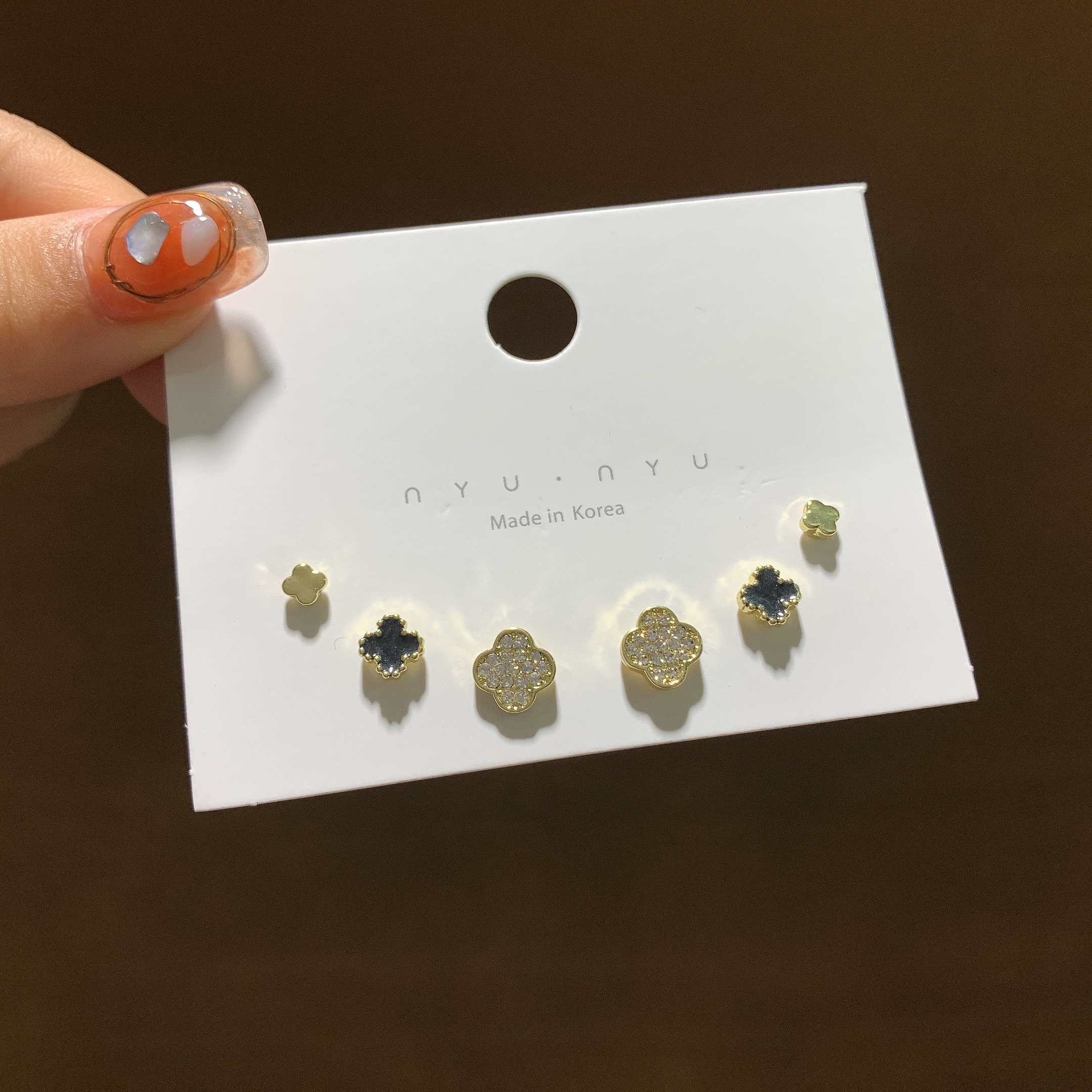 s925 Four-leaf Three Pairs Versatile Korean Style Women’s Silver Needle