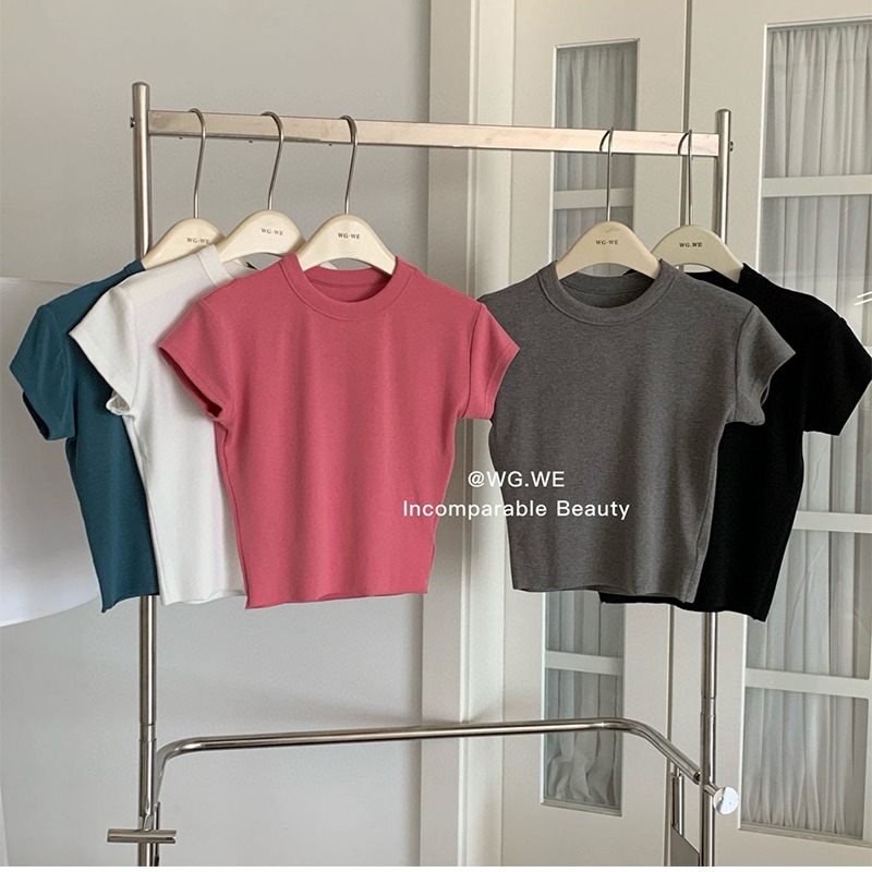 Taozi homemade 2024 spring new Korean style slim short curled hottie T-slim casual top