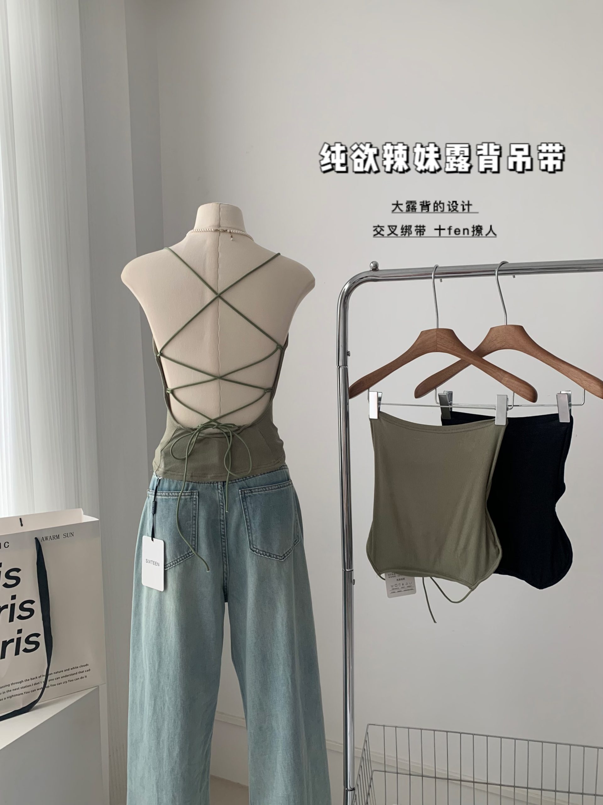 Pure desire green camisole female inner wear hot girl sexy high-end beautiful back black chic short backless top