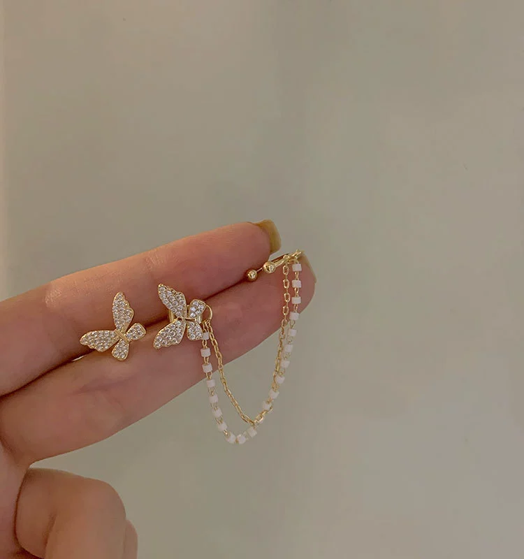 Butterfly Girl Korean one-piece super fairy tassel earrings