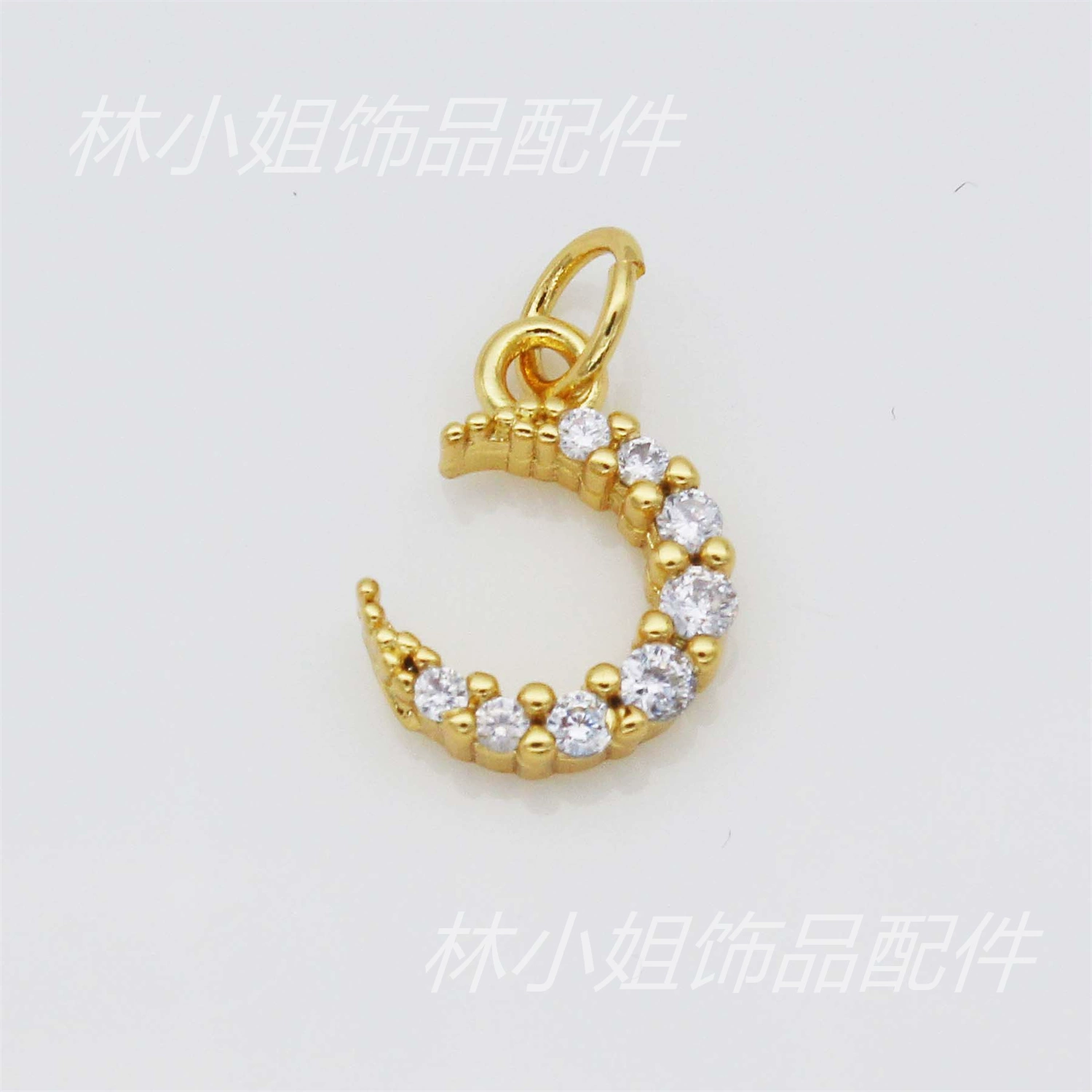 Color-preserving 18K gold-plated micro-paved zircon moon pendant pendant diy hand string beaded bracelet necklace accessories