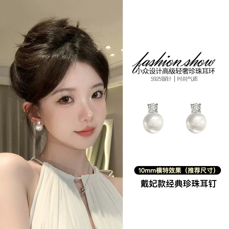 ins pearl large circle female Internet celebrity earrings 925 silver needle