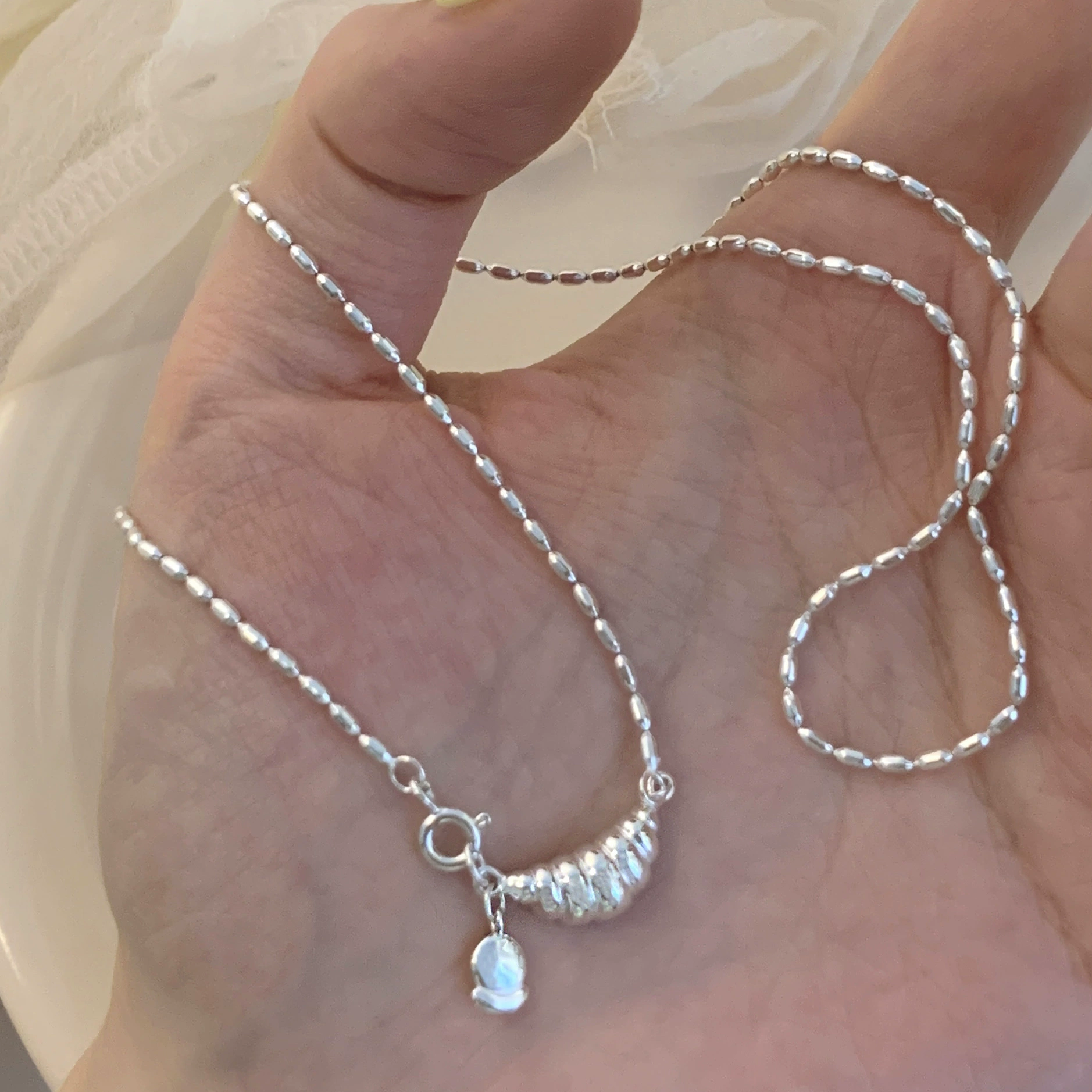 Sweet and Cool Croissant Shape Pendant Necklace Women’s Simple Fashion Personalized Croissant S925 Silver Clavicle Chain Versatile Necklace