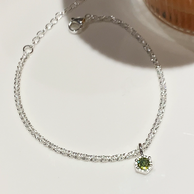 Light luxury girl’s baby’s breath zircon olive green bracelet