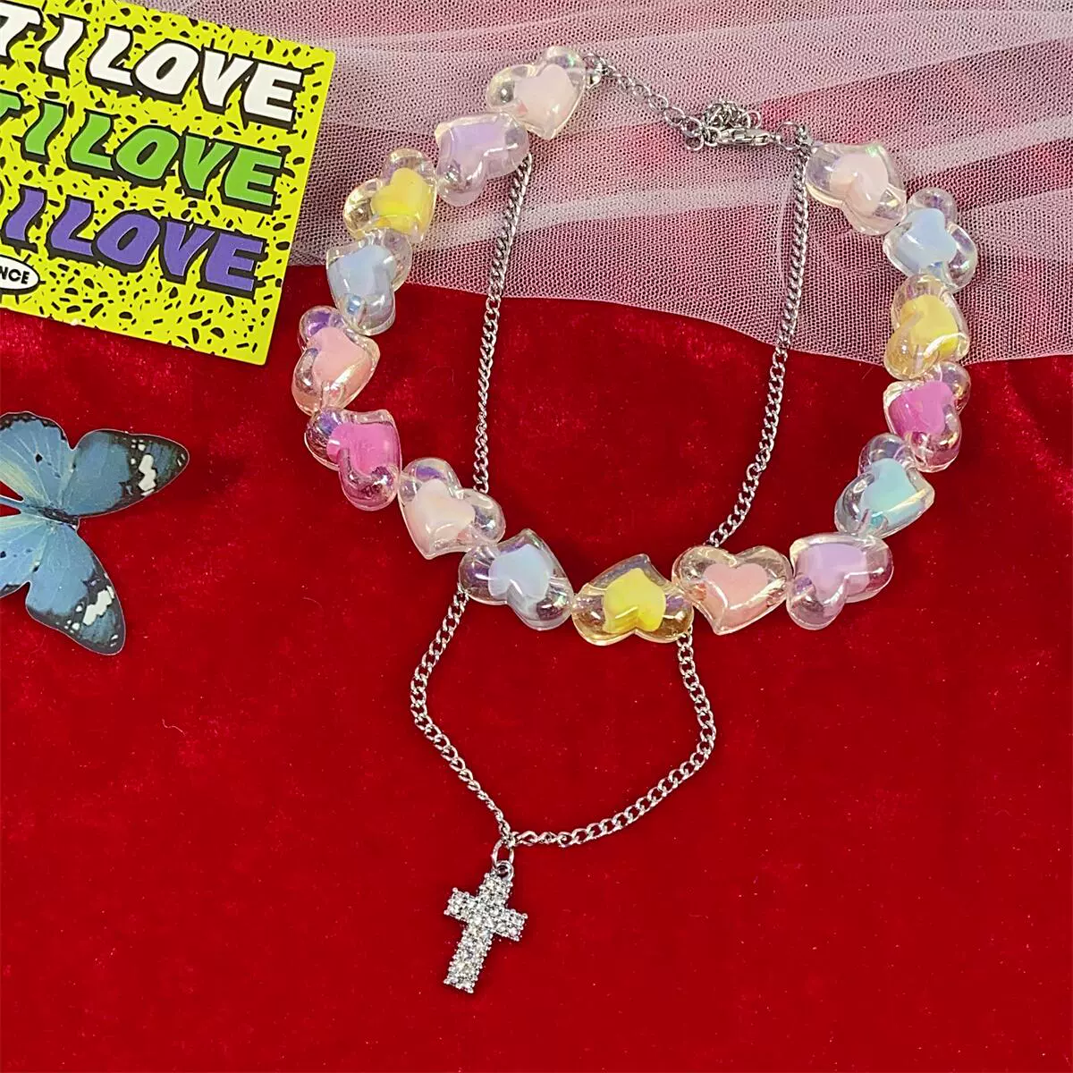 Free shipping Japanese style Harajuku INS star love niche Y2K hot girl subculture subculture subculture double layer women’s necklace