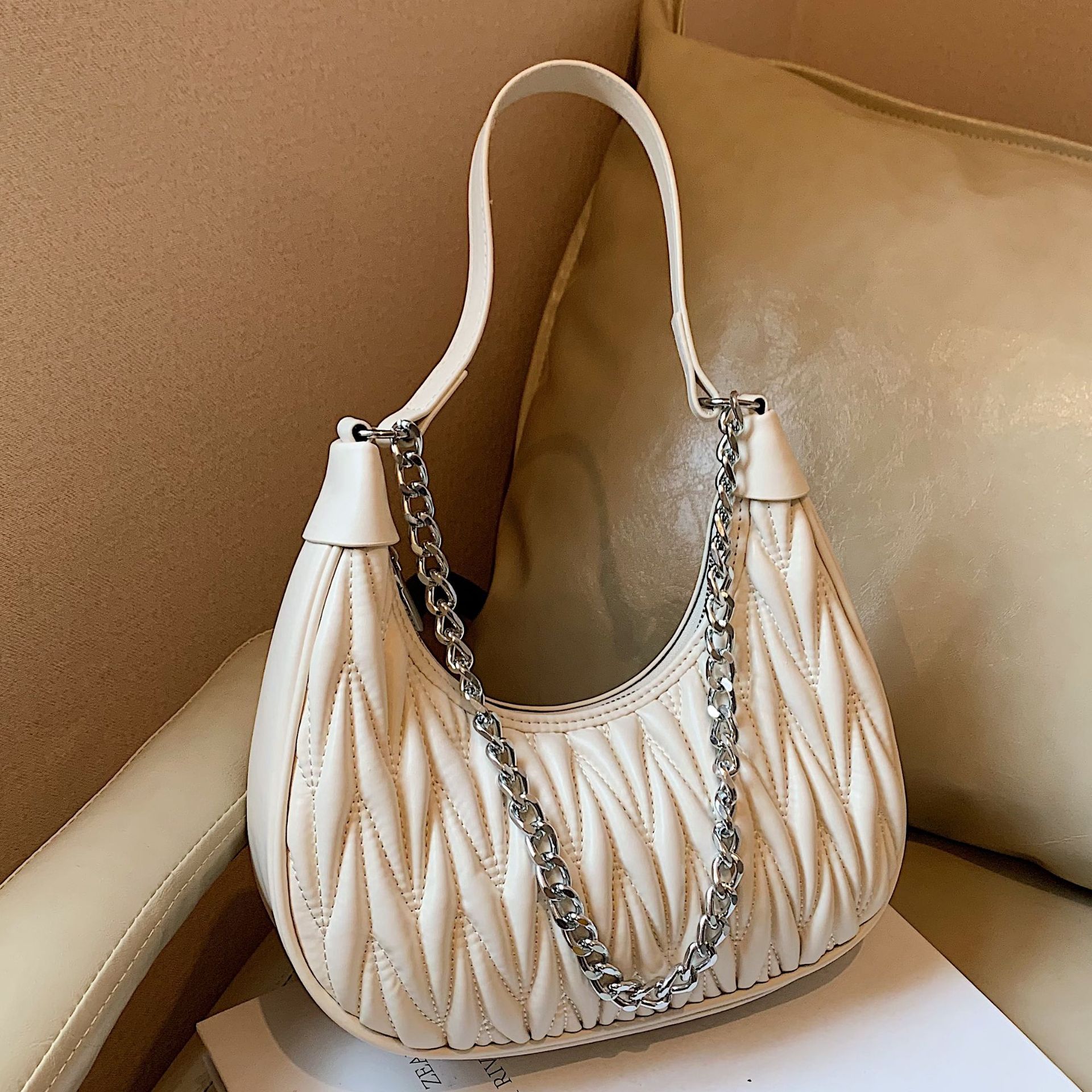 Fashionable All-match Embroidery Underarm Bag Niche Design Pleated Handbag Simple All-match Crescent Bag Shoulder Crossbody Bag