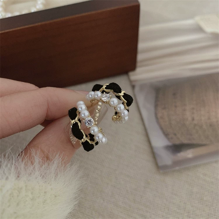 Light luxury black velvet women’s personalized design pearls