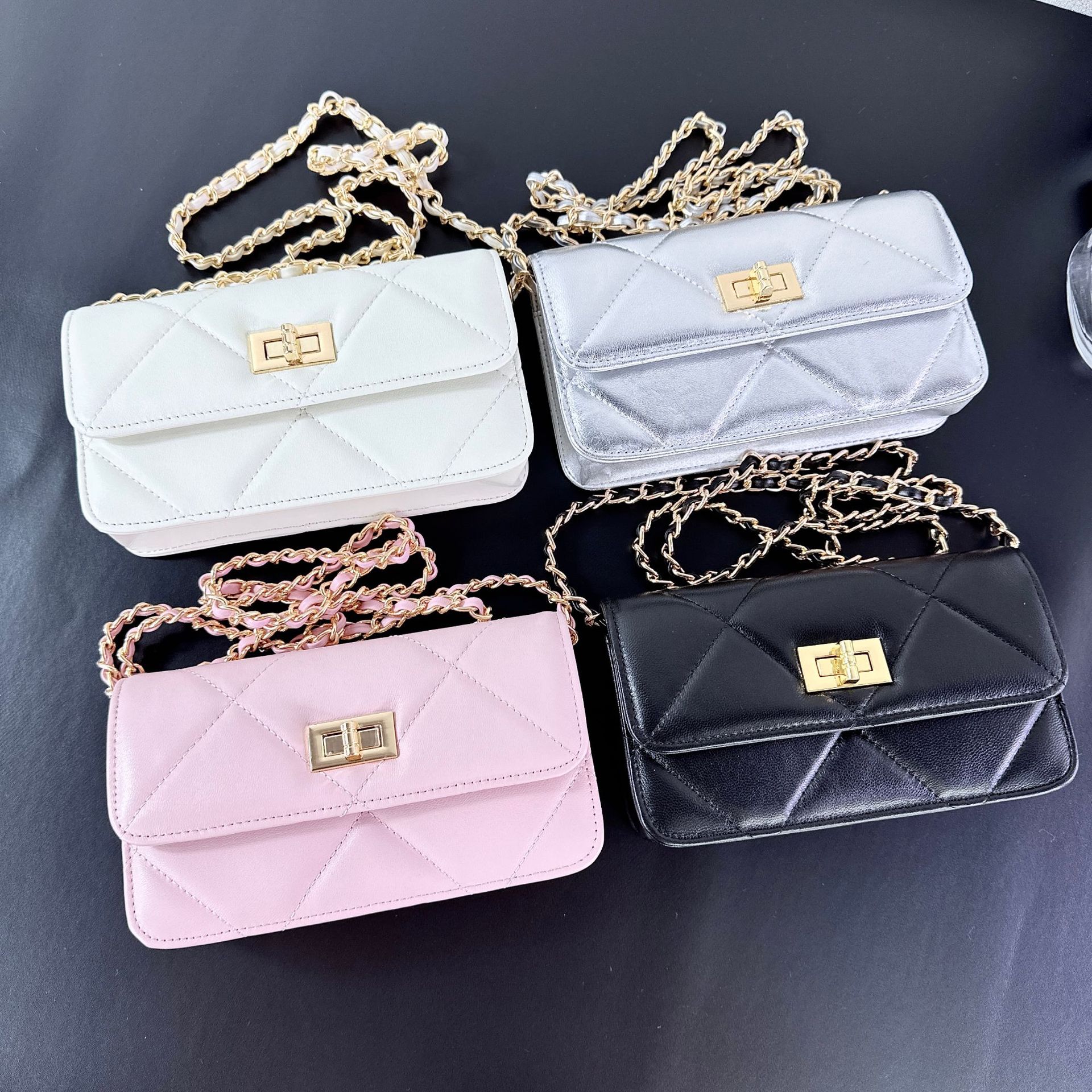 Xiaoxiang Sheepskin Rhombus Chain Mobile Phone Bag High-end Genuine Leather Mini Square Bag Fashionable Shoulder Crossbody Bag for Women