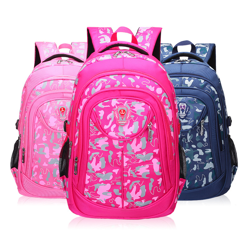 New Korean style high elastic nylon wear-resistant breathable waterproof schoolbag camouflage printing boys and girls decompression spine protection children’s bag
