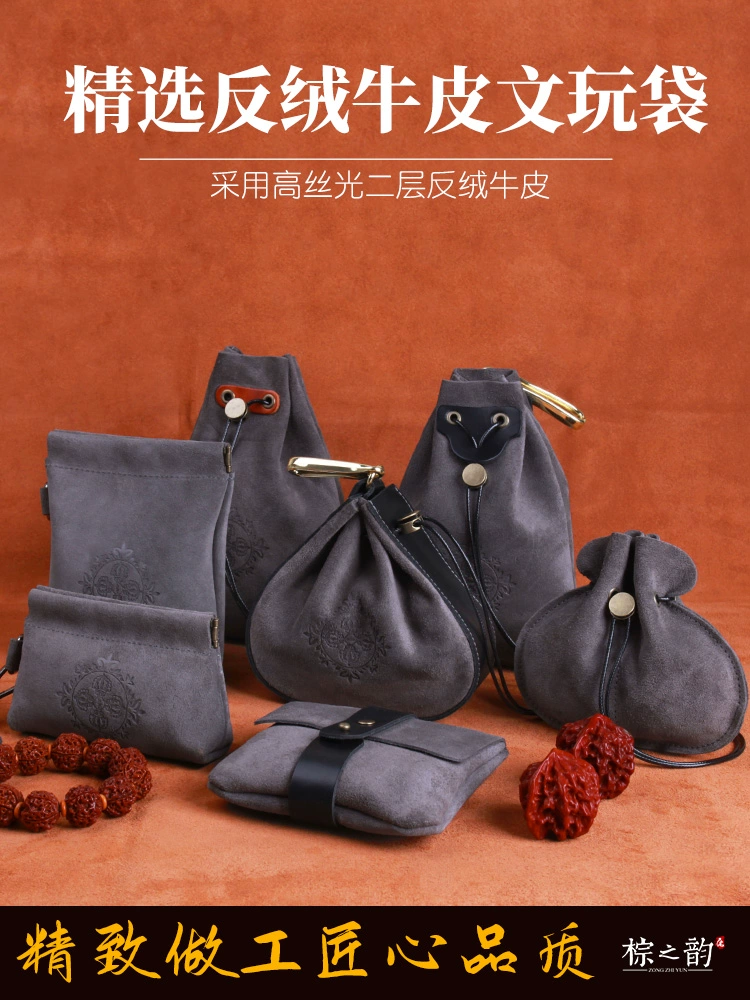 Gray cowhide toy bag, bead bag, toy bag, walnut bag, bodhi bracelet storage bag, high-end jewelry protection bag