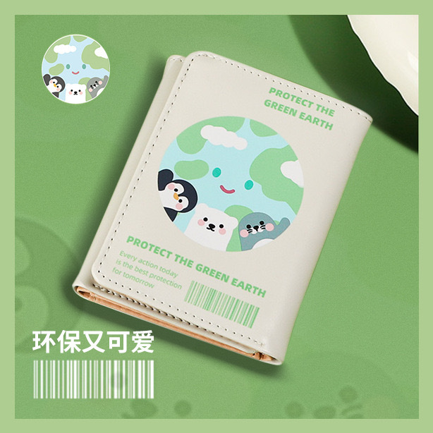 New environmental protection Earth ins student wallet original small multi-card three fold short folding 2023 anti-degaussing