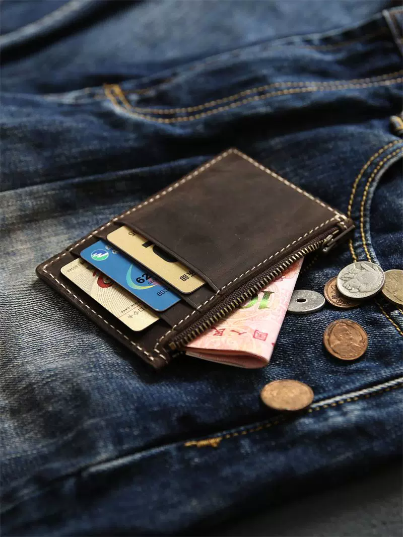 Crazy Horse Head Cruise Men’s Mini Pass Wallet ultra -thin leather zipper coin bag short small wallet card bag