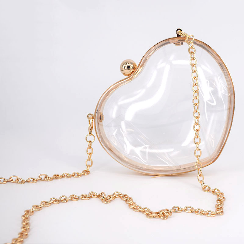 Transparent love small bag girl heart cute crossbody chain bag all-match hand-held acrylic shoulder bag lipstick bag