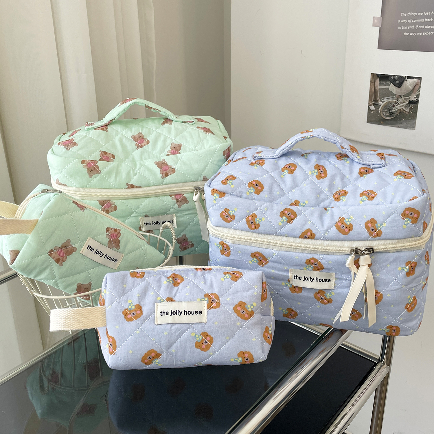 Soft candy small brown bear cosmetic bag cute large capacity wash bag soft quilted sundries storage bag handbag bag