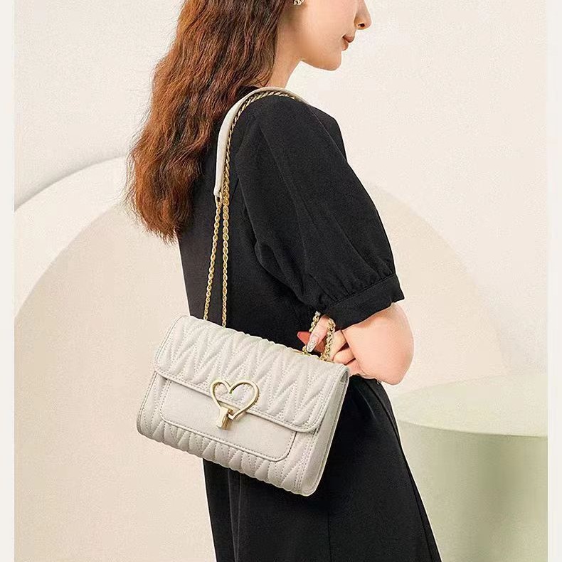 2024 new women’s bag Internet celebrity shoulder bag niche design chain bag women’s messenger bag embroidery thread love pleated bag