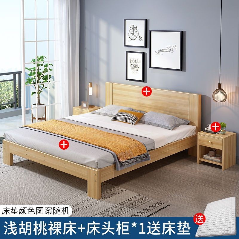 Solid Wood Bed Nordic Simple 1.8m Master Bedroom Double Bed 1.5 Economical Small Apartment Storage 1 m Simple Plate Bed