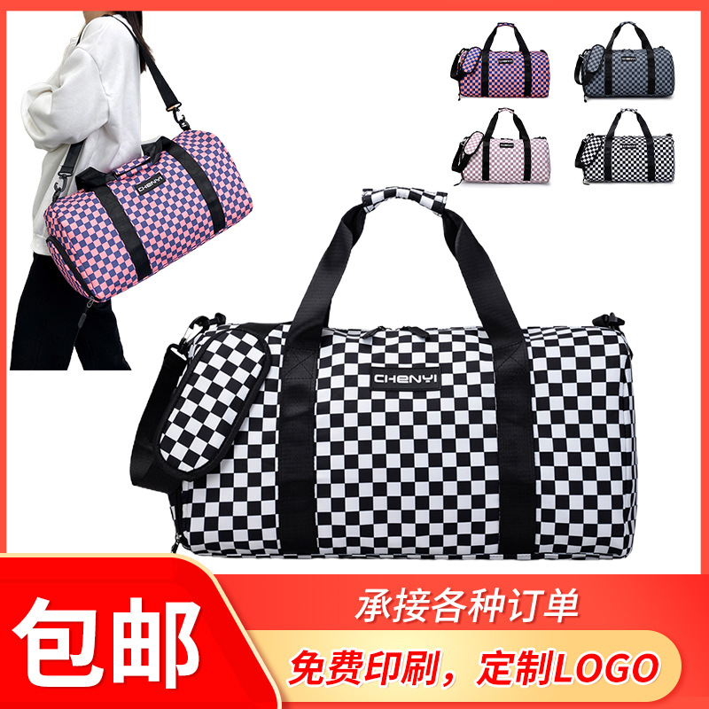 Fresh and Casual Plaid Travel Bag 2024 New Large Capacity Portable Sports Fitness Bag Portable Travel Storage Bag