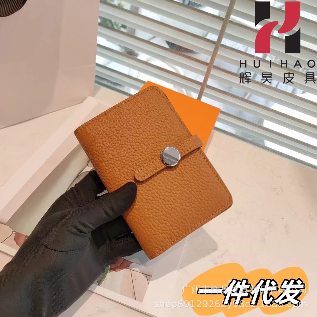 in stock Japanese and Korean Hot-selling Top-layer Cowhide Short Two-fold Women’s Wallet Creative Round Buckle Wallet for Women