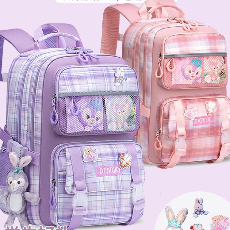 Schoolbag New Style Plaid Princess Ridge Protection Waterproof Primary School Children’s Backpack Cartoon Lightweight Lightweight Lightweight Backpack for Girls