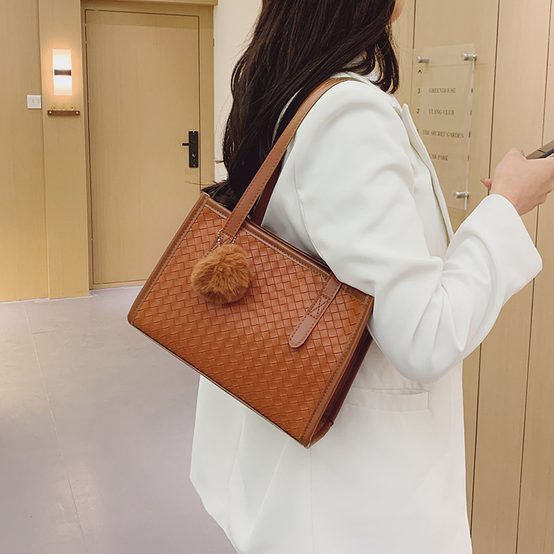 Small Bag Cute Fur Ball Handbag Vintage Bucket Bag Large Capacity Multi-Use One-Shoulder Trendy Bag Internet Celebrant Crossbody Bag