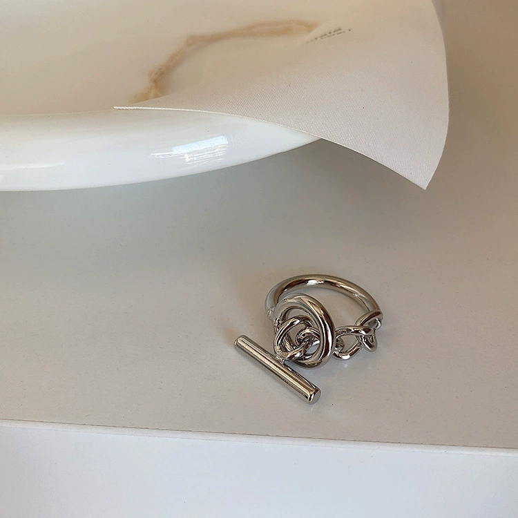 European and American style OT buckle ring for women, versatile personality, fashionable metal chain, S925 silver ring, hip-hop index finger ring