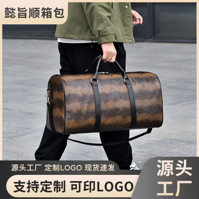 Large Capacity Fashion Men’s Short Distance Travel Bag Retro Trendy Men’s Shoulder Handbag Casual Simple Western Style Fitness Bag