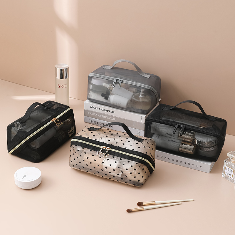 Hot Sale Transparent Mesh Pillow Cosmetic Bag Double Layer Storage Portable Wash Bag Mesh Large Capacity Simple Storage Bag