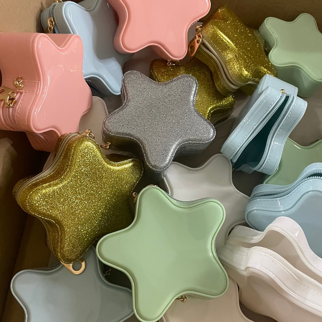 Foreign trade new Chanel style rhombus five-pointed star jelly bag shoulder messenger bag cute lipstick bag mini star bag