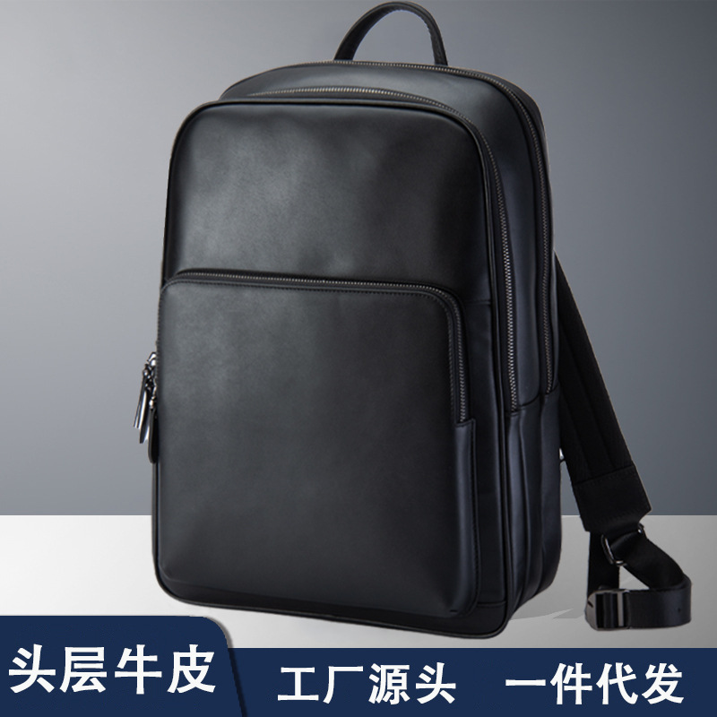 One-piece delivery men’s backpack men’s leather backpack large capacity computer bag business travel bag cowhide backpack