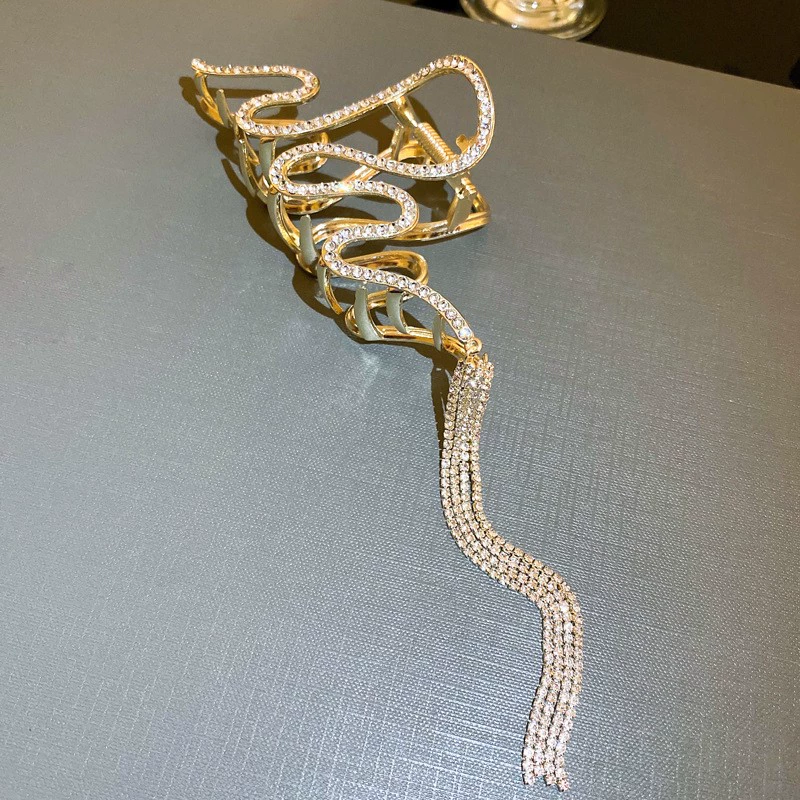 New tassel chain grabber back of head hair shark clip large metal hair accessories snake-shaped headdress for women summer