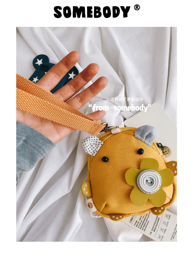 Three -color patch cartoon small wallet female creative canvas earphones storage bag cute Korean hands with cloth purse purse