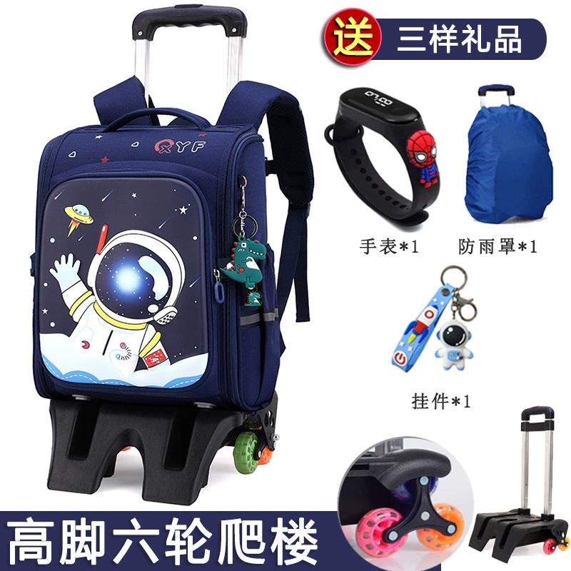 Elementary school students’ trolley school bag for boys in grades 1, 2, 3 to 6 waterproof six-wheel climbing stairs removable children’s trolley case