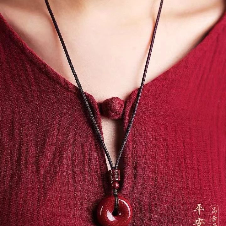 Cinnabar Natural Raw Ore Pendant Women’s Necklace Men’s Safety Buckle Pendant Purple Gold Sand